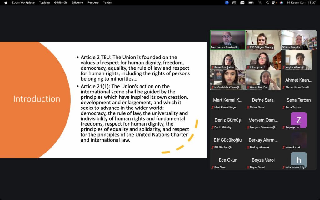 Organized by the Jean Monnet Chair in Legal Aspects of Migration Management in the European Union and in Türkiye, the Migration Talks-V conference was held on the 14th of November, 2025. Paul James Cardwell is Professor of Law and Vice Dean (Education) at the Dickson Poon School of Law, King’s College London. He is also the editor of the leading interdisciplinary journal JCMS: Journal of Common Market Studies. His research focuses on the law and politics of the EU’s external relations, and in particular on migration. He has published widely and is currently preparing a monograph on contemporary EU migration governance and ‘formal informality.’